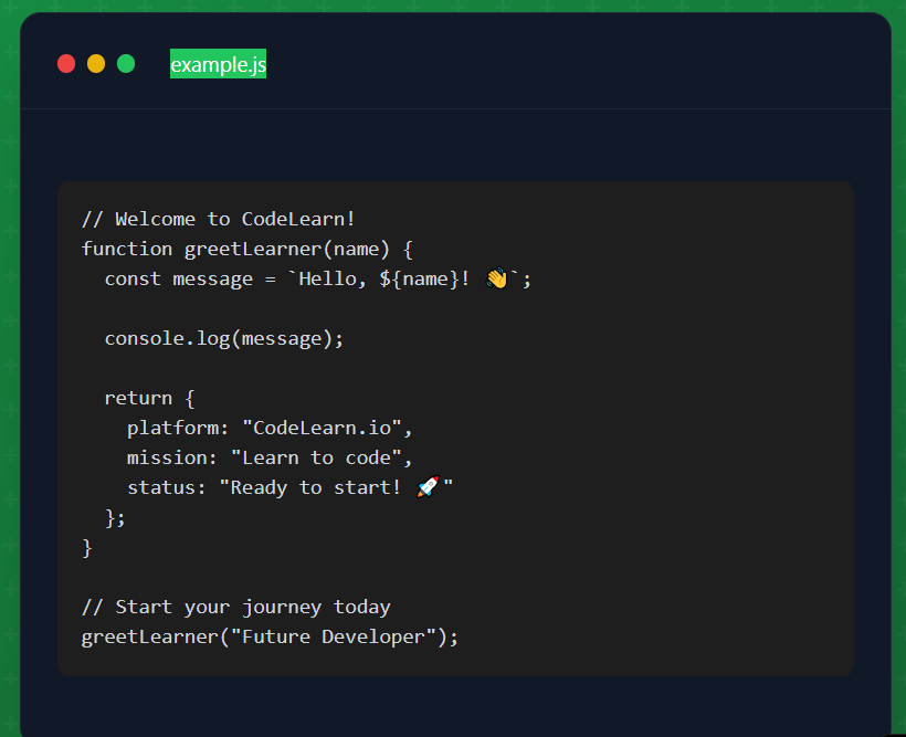 Start Learning Today - It's Free! Learn to Code With Confidence Master programming with the world's most comprehensive learning platform. From HTML to Python, start your coding journey today. 1k+ Active Learners 55+ Tutorials 15+ Programming Languages 10k+ Code Examples Choose Your Path Explore our comprehensive library of programming languages and technologies. From web development to data science, we’ve got you covered. Why Choose Codecrafty? We provide everything you need to become a successful programmer Interactive Tutorials Learn with step-by-step guided tutorials with real-time examples Live Code Editor Practice coding in our browser-based code editor with instant preview Structured Courses Follow curated learning paths from beginner to advanced levels Earn Certificates Get certified upon completion and showcase your skills Try Our Live Code Editor Write, run, and experiment with code directly in your browser. No setup required – just start coding! Real-time code execution Multiple language support Instant error feedback Save and share your code Launch Code Editor What Our Learners Say Join hundreds of satisfied learners worldwide ★★★★★ "Best platform for learning programming. The code editor is incredibly helpful for practice." SJ Sarah Johnson Frontend Developer ★★★★★ "CodeLearn transformed my career. The interactive tutorials made learning JavaScript so much easier!" SJ Michael Chen Full Stack Developer ★★★★★ "I went from zero coding knowledge to building my own apps. Highly recommended!" SJ Emily Davis Computer Science Student Ready to Start Your Coding Journey? Join over 10 million learners and start coding today. It’s completely free! Get Started free Explore Tutorials